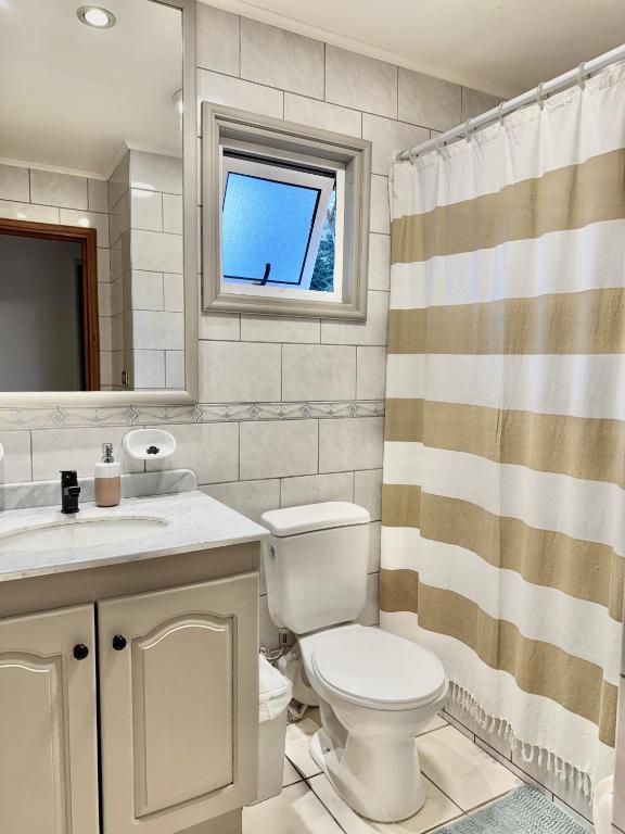 El alojamiento se encuentra en Camino Villarrica a Pucón Km 12,5 Casa Rosa Condominio Almahue, Pucón, Chile.